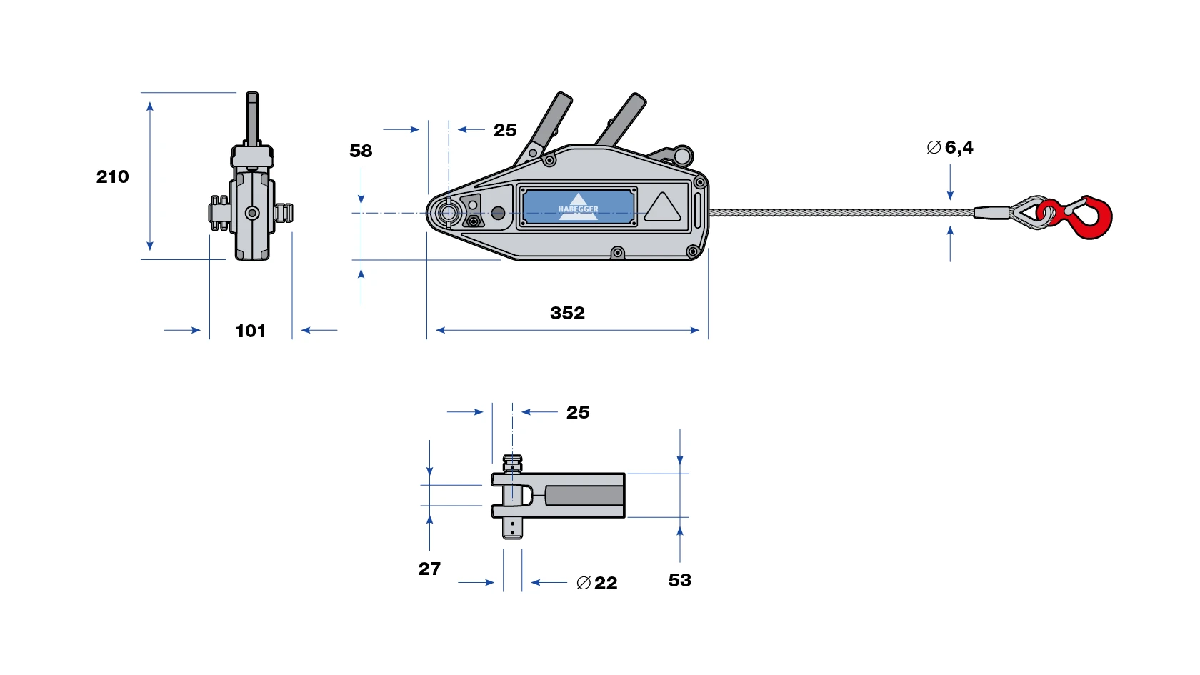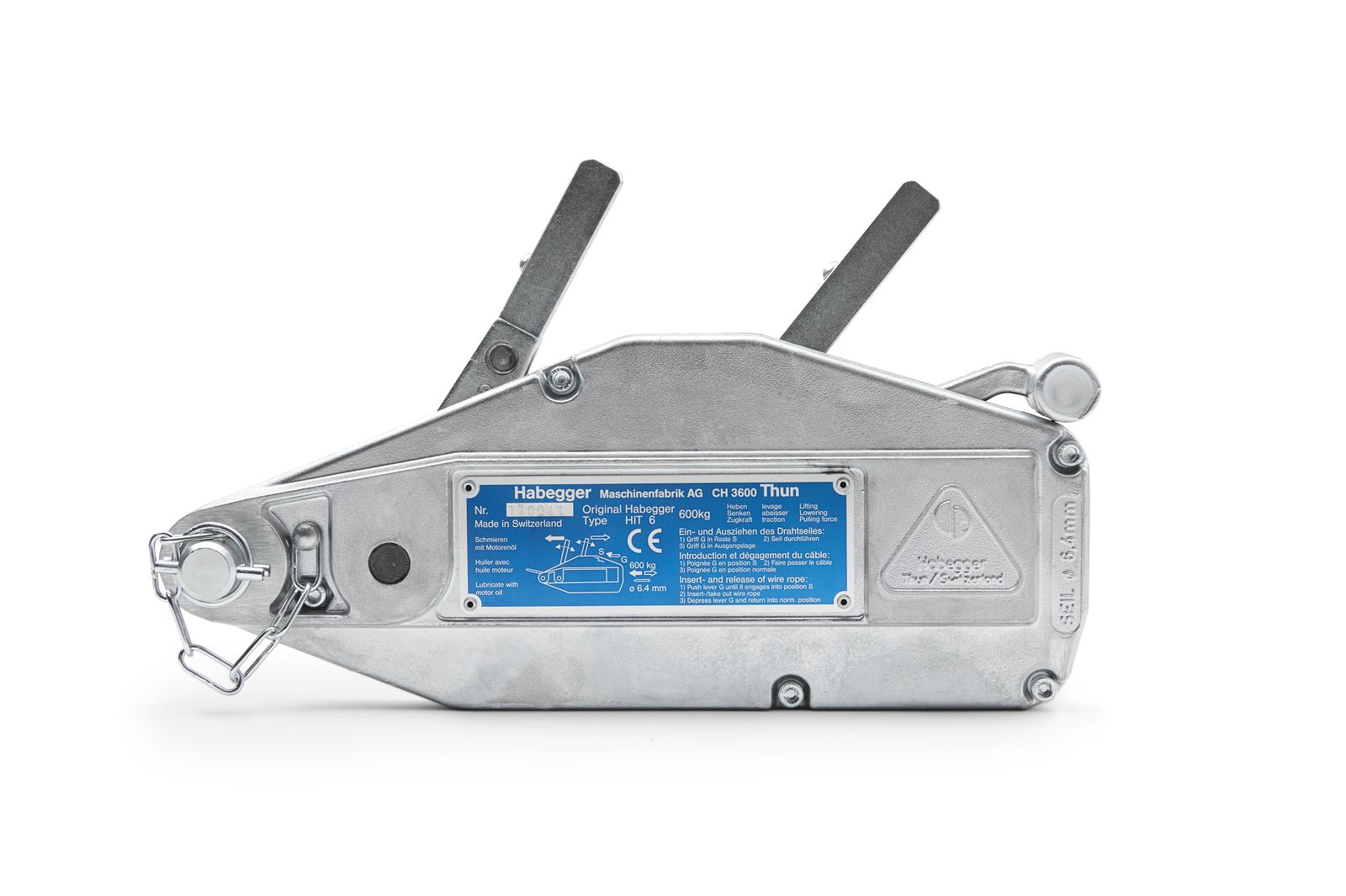 Il più piccolo e leggero, ideale per tirare, alzare e abbassare. Realizzato con telaio in acciaio legato e leggero, è dotato di bullone di ancoraggio fissato e di limitatori di sovraccarico con perno di sicurezza. Include perni di sicurezza di ricambio integrati nella leva di apertura ed è disponibile con pratica valigetta per il trasporto e lo stoccaggio.