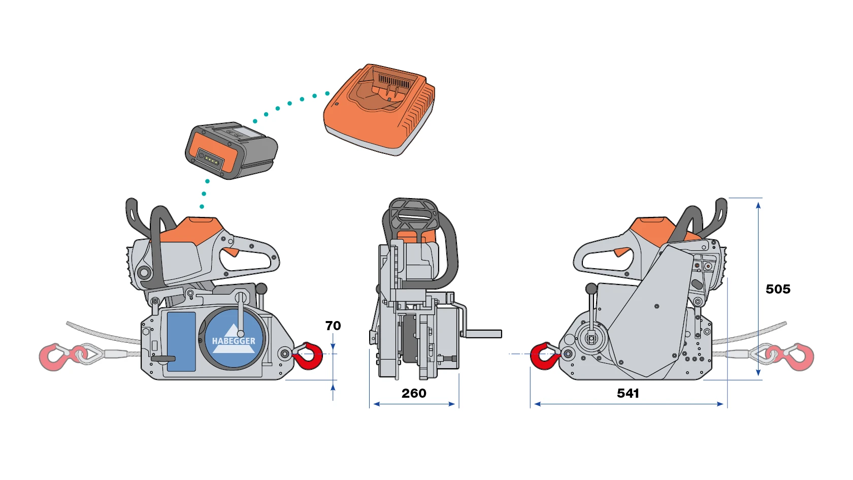 Con HIT-TRAC 8A con motore elettrico a batteria, i carichi possono essere sollevati, trainati e abbassati in modo sicuro, silenzioso e senza emissioni, anche in ambienti chiusi o aree sensibili. Questo potente e compatto motore a fune è alimentato da un efficiente sistema a batteria Li-Ion che garantisce elevata autonomia, facilità di utilizzo e massima mobilità sul cantiere. Grazie al peso ridotto e alla gestione intuitiva, il dispositivo è ideale per applicazioni professionali dove sono richieste precisione, sicurezza e flessibilità operativa. La velocità della fune è regolabile in modo continuo, mentre il sistema di protezione integrato contro il sovraccarico assicura un funzionamento affidabile anche in condizioni di lavoro gravose. Il HIT-TRAC 8A rappresenta la soluzione perfetta per installazioni su teleferiche, cantieri in quota e movimentazioni su fune senza necessità di alimentazione diretta.